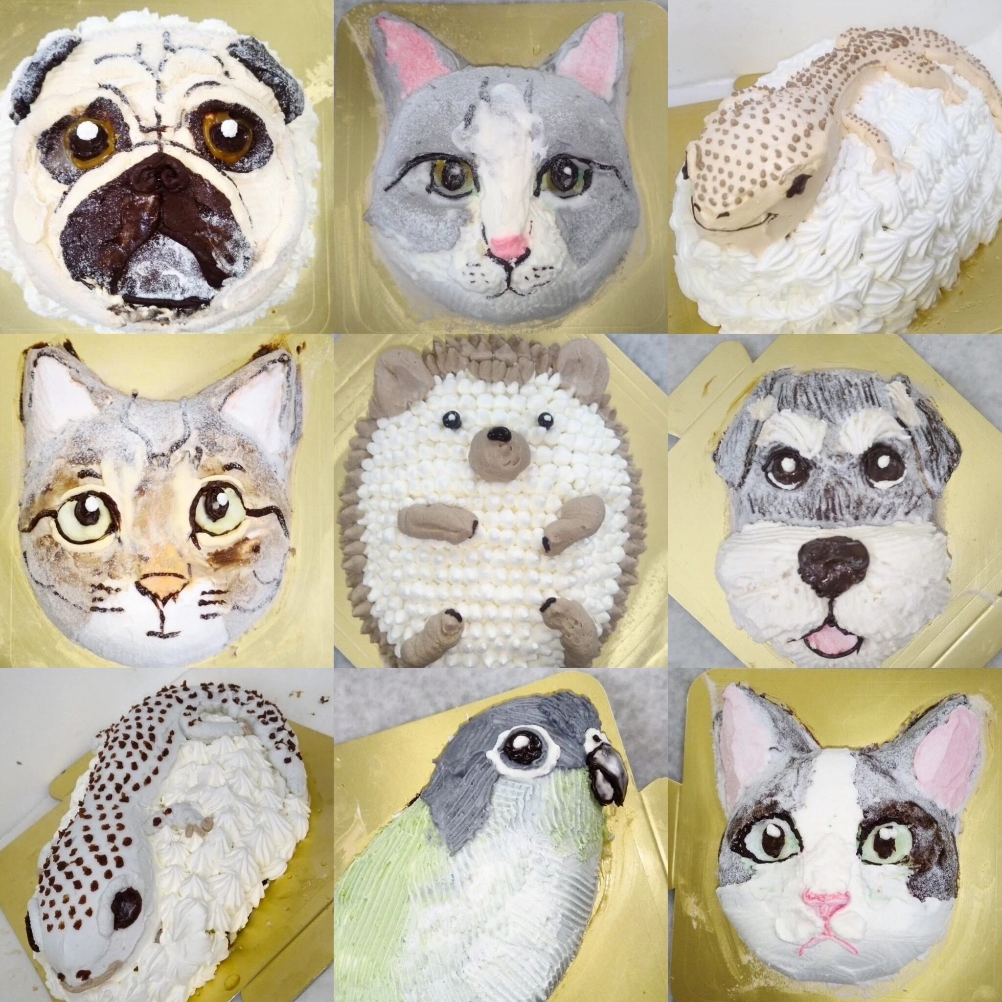 大切なペットさんのケーキはいかがでしょうか?立体ケーキでお作りします。サプライズにいかがですか? スポンジが4段で間に苺をサンドしています。 全てキャンドルとお誕生日プレートが付きます。